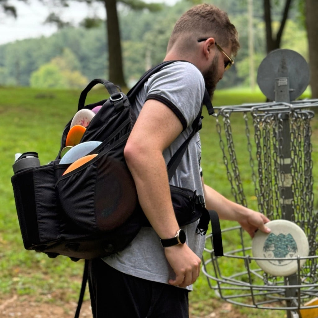 The Shift disc golf backpack is brilliantly designed to distribute the weight so that carrying it is a breeze. At just 2.5 pounds, it stays light, no matter how much gear you load. Many of our verified product reviews mention how lightweight and comfortable the Shift is, even on hiking trips.